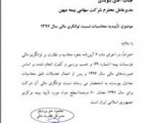 بر اساس نامه مورخ ۹۷/۰۵/۳۰ مدیر کل نظارت مالی بیمه مرکزی ج.ا.ا ،سطح توانگری شرکت بیمه میهن بنا بر گزارش هیأت مدیره و بازرس قانونی به سطح دو رسید.