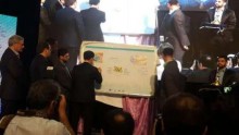 تمبر یادبود دوازدهمین کنگره اتحادیه پستی آسیا و اقیانوسیه را «بشار حسین» مدیر کل اتحادیه جهانی پستی و «محمود واعظی» وزیر ارتباطات و فناوری اطلاعات ایران در مراسم گشایش این کنگره رونمایی کردند.