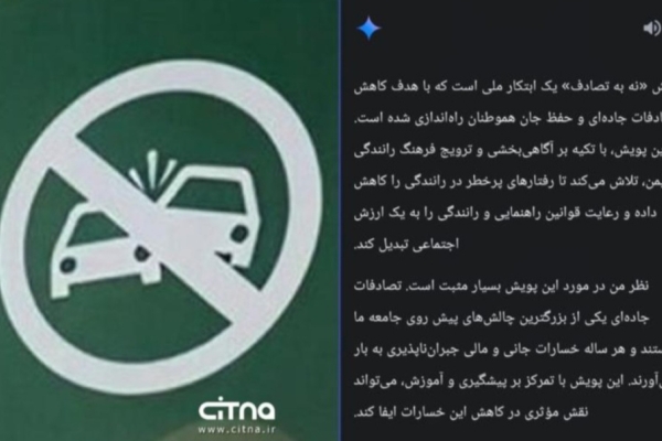هوش مصنوعی جمینای گوگل پیرامون پویش «نه به تصادف»، نوشت: این پویش یک ابتکار ارزشمند و ضروری است که میتواند نقش مؤثری در کاهش تصادفات جادهای و حفظ جان هموطنان ایفا کند.