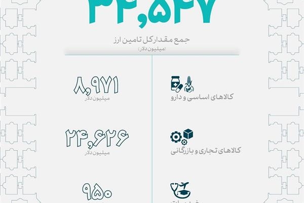 به گزارش دیوان اقتصاد، از این میزان، ۲۴ میلیارد و ۶۲۶ میلیون دلار به بخش تجارت و بازرگانی، 8 میلیارد و 971 میلیون دلار به کالاهای اساسی و دارو و 950 میلیون دلار به بخش خدمات تخصیص داده شده است.