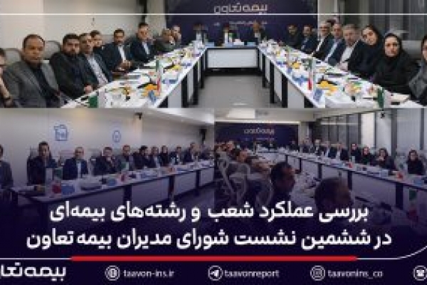 ششمین جلسه شورای مدیران شرکت بیمه تعاون با حضور مدیرعامل، رئیس هیئت‌مدیره، معاونین و مدیران ستادی برگزار شد. در این نشست، عملکرد شرکت به تفکیک شعب و رشته‌های بیمه‌ای بررسی و بر توسعه پرتفوی هدفمند و افزایش رفاه کارکنان تأکید شد.