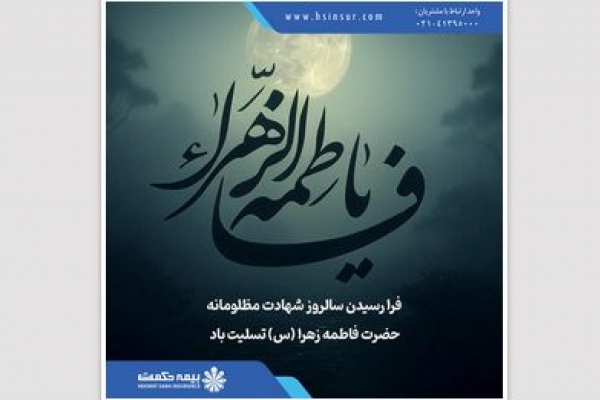فرارسیدن سالروز شهادت مظلومانه حضرت فاطمه زهرا (س) ، دخت گرامی پیامبر اکرم (ص) و الگوی بی‌بدیل کمال و ایثار ، خدمت مردم شریف ایران و خانواده بزرگ بیمه حکمت صبا تسلیت عرض می نمایم.