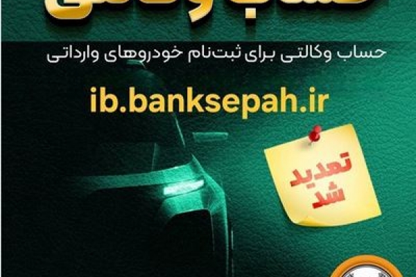 تمدید مهلت وکالتی کردن حسابهای بانک سپه برای ثبتنام خودروهای وارداتی