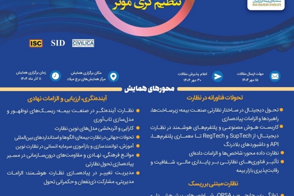 این همایش که به ابتکار پژوهشکده بیمه و با حمایت بیمه مرکزی جمهوری اسلامی ایران برگزار میشود، بستری برای تبادل نظر میان نهادهای سیاستگذار، شرکتهای بیمه، دانشگاهیان و فعالان حوزه تنظیمگری فراهم میآورد.