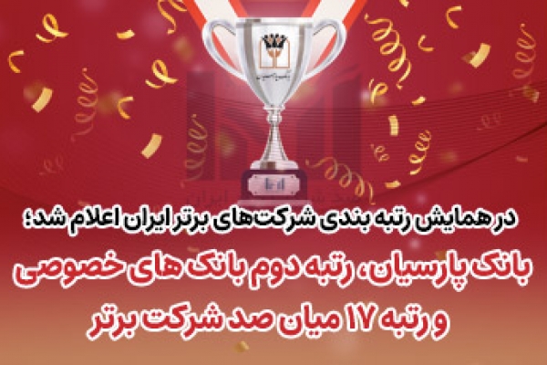 بانک پارسیان رتبه دوم بانکهای خصوصی و رتبه 17میان صد شرکت برتر ایران