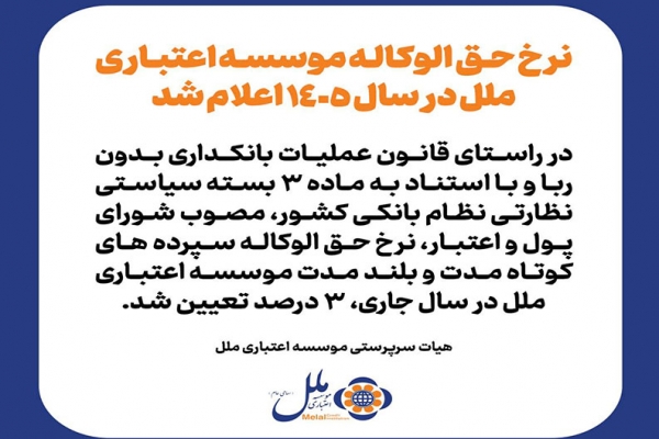 نرخ حق الوکاله موسسه اعتباری ملل در سال ۱۴۰۵ اعلام شد.