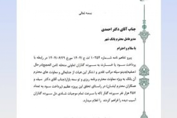 بدیهی است انجام موفقیتآمیز این مسئولیت، حاصل همافزایی میان بانک مرکزی جمهوری اسلامی ایران، هیأت تصفیه تعاونی منحله ثامنالحجج و مجموعه مدیریتی و اجرایی بانک شهر بوده و بیانگر عزم جدی نظام بانکی کشور در صیانت از حقوق سپردهگذاران و ارتقای نظم و انضباط مالی است.