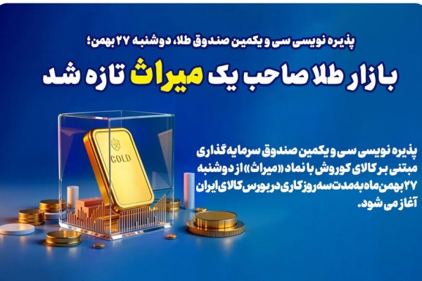 پذیرهنویسی سی و یکمین صندوق سرمایه گذاری مبتنی بر کالای کوروش با نماد «میراث» از دوشنبه ۲۷ بهمن ماه به مدت سه روز کاری در بورس کالای ایران آغاز می شود.