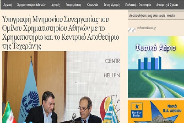 تفاهم نامه همکاری شرکت های سپرده گذاری مرکزی ایران و بورس آتن یونان (ATHEXCSD) بازتاب گسترده ای در رسانه های این کشور داشت.