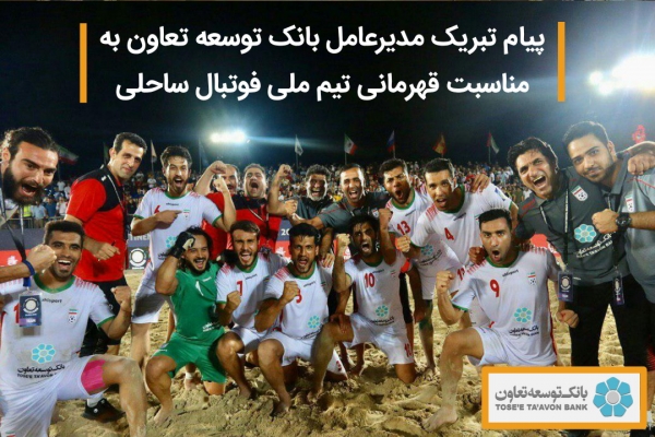 مدیر عامل بانک توسعه تعاون قهرمانی تیم ملی فوتبال ساحلی را تبریک گفت.