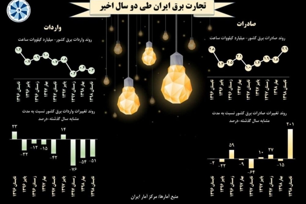از سوی دیگر در حالی که ایران در تابستان سال ۹۷ معادل ۱.۲ میلیارد کیلووات ساعت برق وارد کرده است، این رقم با حدود ۰.۹ میلیارد کیلووات ساعت کاهش به ۰.۳ میلیارد کیلووات ساعت در تابستان ۹۸ رسیده است.