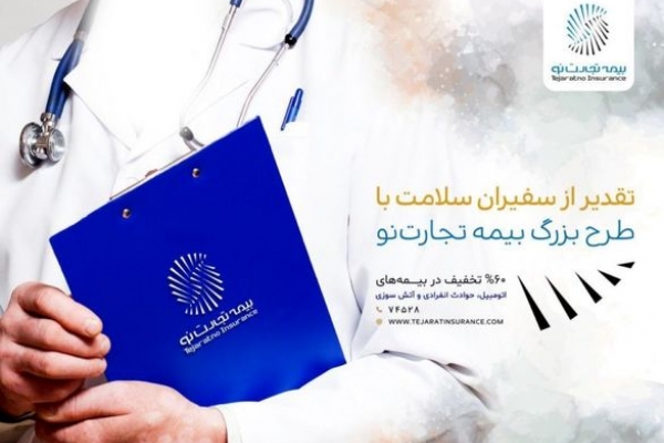 بیمه تجارتنو جهت قدردانی از زحمات پزشکان وپیراپزشکان، در رشتههای مختلف بیمهای به سفیران سلامت تخفیف میدهد.