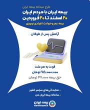 بیمه ایران طرح بیمه عمر را در قالب بسته بیمه ای ۲۰-۲۰ ویژه ایام نوروز در بازه زمانی ۲۰ اسفند ۱۴۰۳...