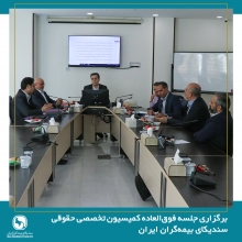 جلسه کمیسیون تخصصی حقوقی سندیکای بیمهگران ایران شنبه ۲۹ شهریور ۱۴۰۴ با حضور مدیرکل دفتر حقوقی بیمه مرکزی ج.ا.ایران و اعضای کمیسیون در محل سندیکا برگزار شد.